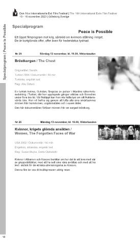 Ett öppet filmprogram mot krig, särskild om kvinnors ställning i kriget.