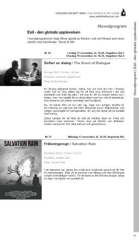 I huvudprogrammet visas filmer gjorda av filmare i exil och filmare som lever