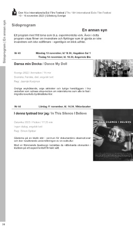 Sidoprogram | En annan syn Ett program med fritt tema som bl.a. experimentella verk. Även i detta